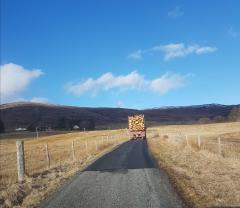 driving timber lorries on his way to deliver to